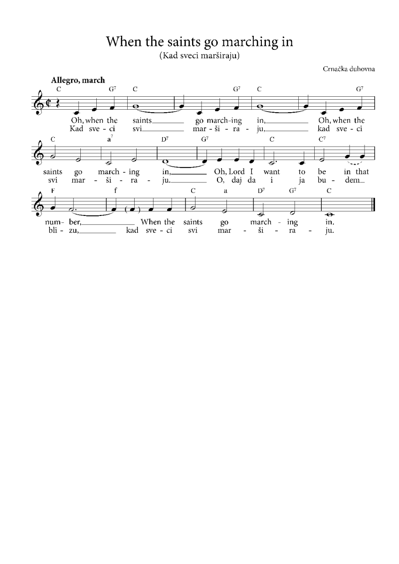 - Pronaći i napisati nekoliko rečenica o CRNAČKOJ DUHOVNOJ GLAZBI (negro spiritual).