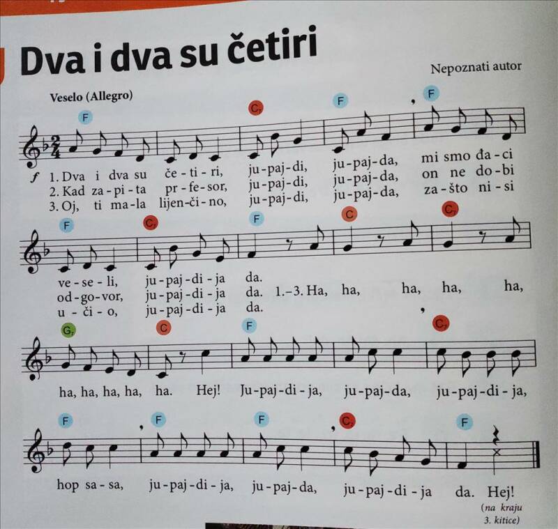 Danas nam slijedi obrada ove vesele đačke pjesme.